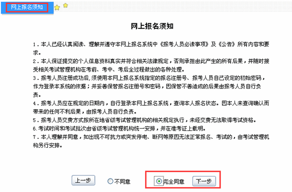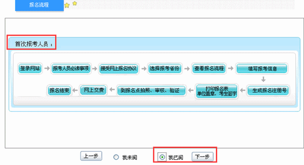 首先查看报考人员必读事项。首次报考人员点击“注册(填写报名信息)”按钮,进行注册。