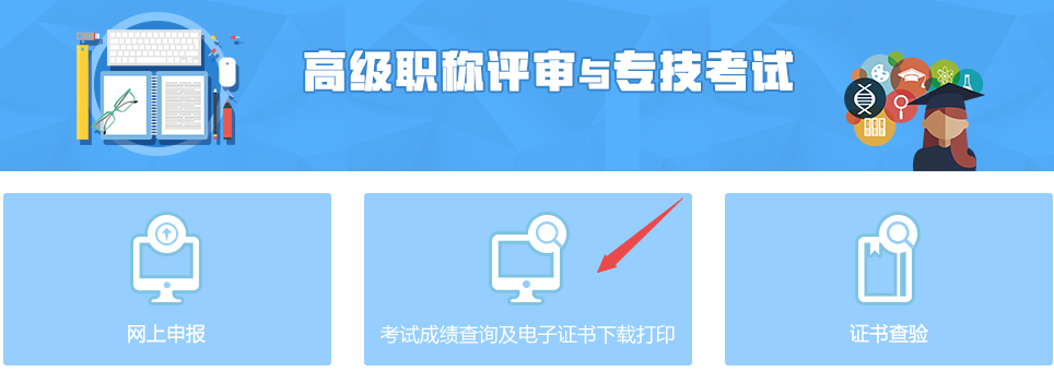 2、点击“高级职称评审与专技考试”栏目——“考试成绩查询及电子证书下载打印”,登录后方可查询证书信息。