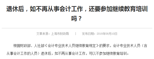 注:以上只是上海地区2018年的会计继续教育政策哦,鉴于各省继续教育存在差异性,具体详情还请咨询当地财政部门哦。