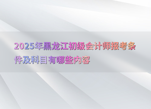 2025年黑龙江初级会计师的报名时间为1月3日-24日12:00。