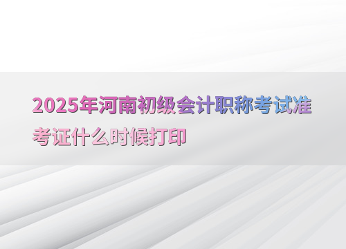 问:2025年初级会计职称考试时间是什么时候?答:河南省考试时间为5月17日至20日。