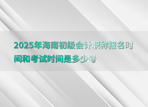 对于计划参加2025年海南初级会计职称考试的考生来说,了解具体的报名时间至关重要。
