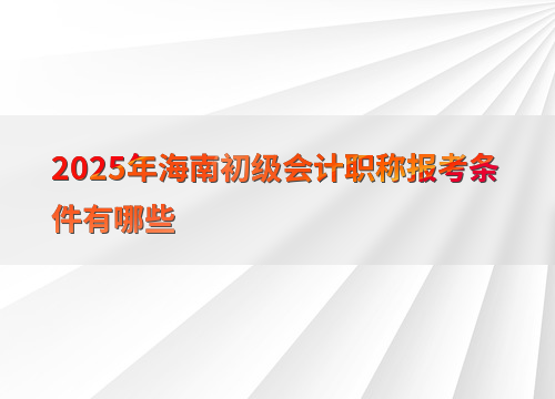 2025年海南初级会计职称考试的报名条件有哪些?根据官方规定,考生需满足以下基本要求: