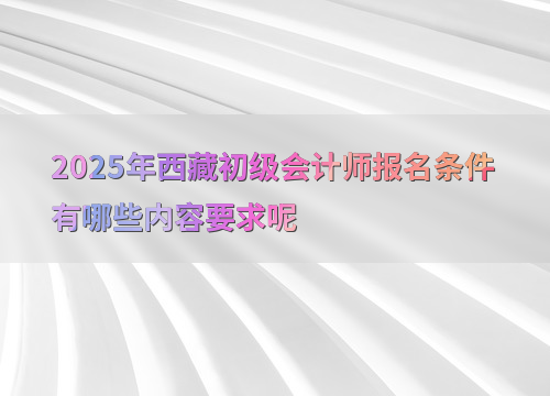 2025年,西藏地区的考生若想参加初级会计师资格考试,需要满足一系列特定的条件。