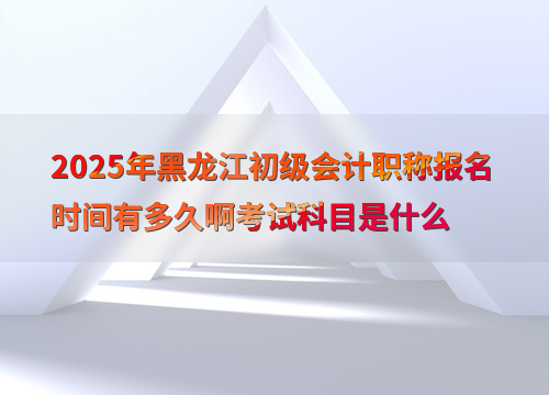 2025年黑龙江初级会计职称的报名时间为1月3日至1月24日12:00。