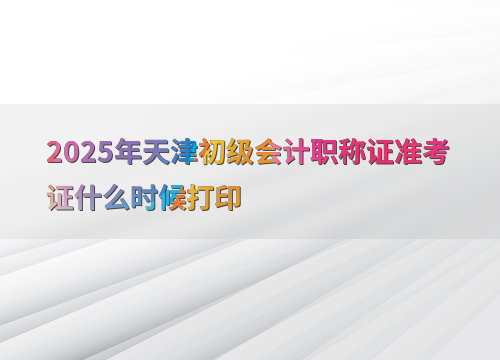 问:天津初级会计职称准考证打印时间是什么时候?答:天津初级会计职称准考证打印时间为考前3-5天,请关注天津市财政局发布的官方通知。