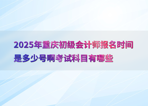 2025年重庆初级会计师的报名时间为1月3日9:00至1月24日12:00。