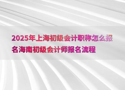 2025年上海初级会计职称的报名时间为1月8日10:00至1月24日12:00。