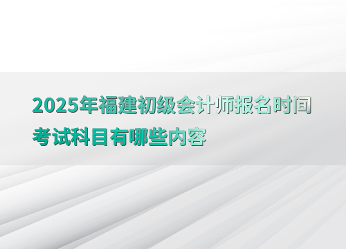 2025年福建初级会计师的报名时间为1月3日至1月24日12:00。