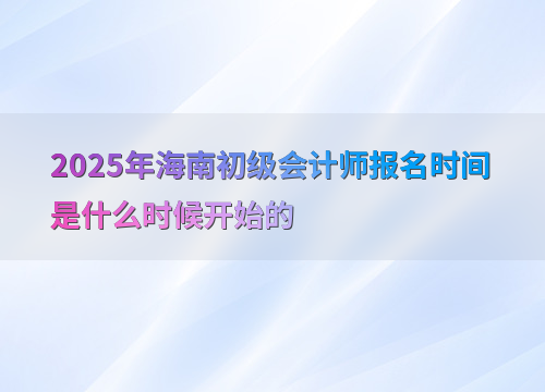 2025年海南初级会计师的报名时间为1月3日10:00至1月24日12:00。
