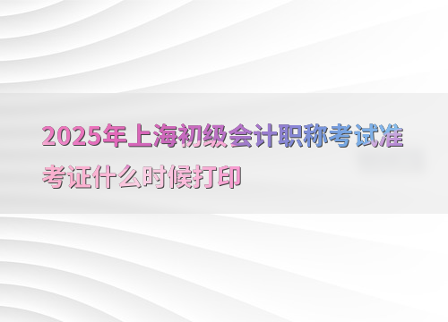 2025年上海初级会计职称考试准考证打印时间为5月12日10:00至5月14日24:00。