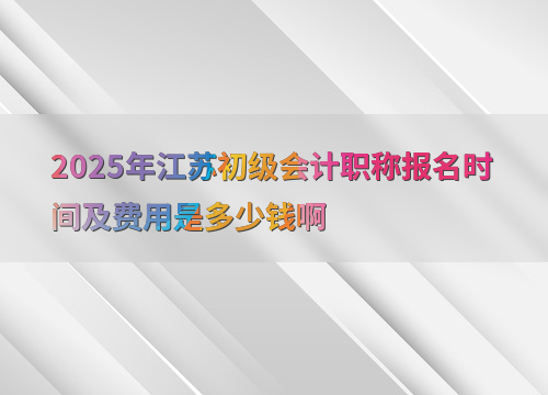 2025年江苏初级会计职称的报名时间为1月7日-24日12:00。