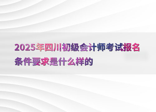 2025年四川初级会计师考试的报名条件有哪些具体要求?以下是详细解析: