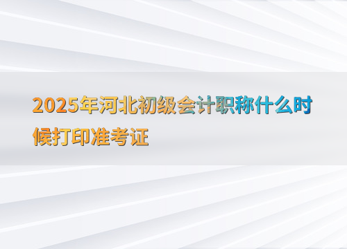 2025年初级会计职称准考证打印时间:根据2025年初级会计职称考务日程安排,河北地区准考证打印时间为5月12日至20日。