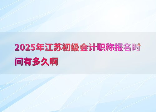 2025年江苏初级会计职称的报名时间为1月7日至1月24日12:00。