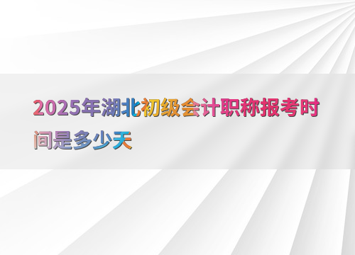 2025年湖北初级会计职称的报名时间为1月4日6:00至1月24日12:00,共计20天。