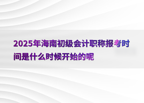 2025年海南初级会计职称的报名时间为1月3日10:00至1月24日12:00。