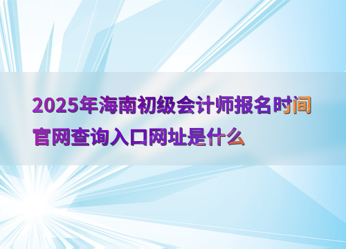 2025年海南初级会计师的报名时间为1月3日10:00至1月24日12:00。