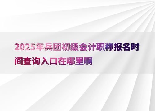 2025年兵团初级会计职称的报名时间为1月10日至1月24日12:00。