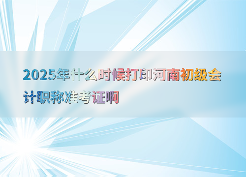 2025年初级会计职称准考证打印时间:根据2025年初级会计报名信息,河南地区的准考证打印时间为5月9日至5月16日。