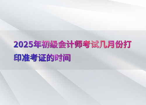 2025年初级会计师考试准考证打印时间将在4月16日前由各省级考试管理机构公布。