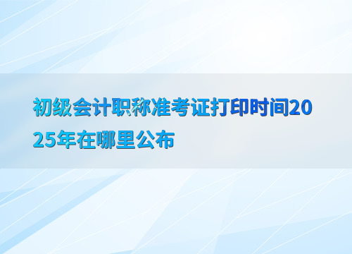2025年初级会计职称考试的准考证打印时间将在各省级考试管理机构公布。