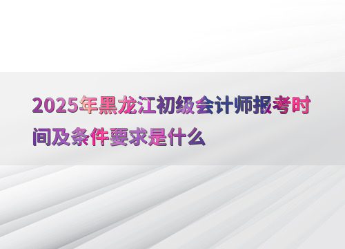 2025年初级会计师全国报名时间为1月3日至1月24日12:00,黑龙江地区报名时间与全国保持一致。