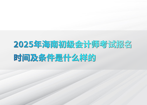 2025年初级会计师全国报名时间为1月3日至1月24日12:00,其中海南地区的报名时间为1月3日10:00至1月24日12:00。