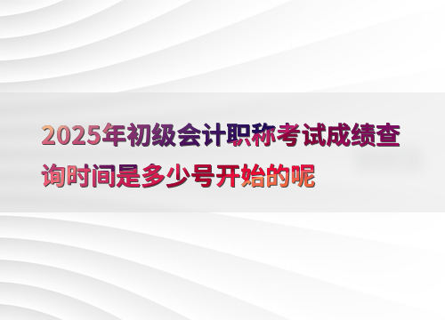 2025年初级会计职称考试成绩查询时间预计在2025年6月20日左右公布。