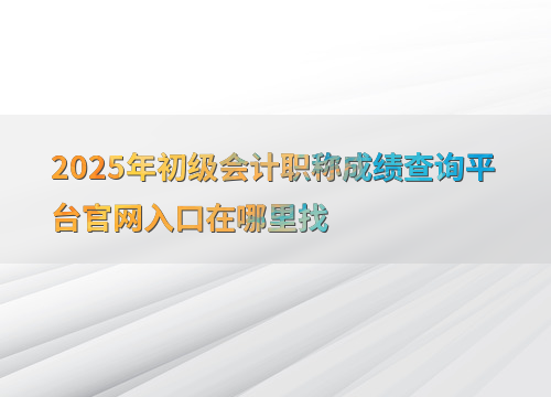 2025年初级会计职称考试成绩查询的官方入口为“全国会计资格评价网”。