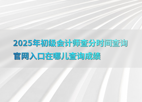 2025年初级会计师考试成绩预计在6月公布,具体日期需以官方通知为准。