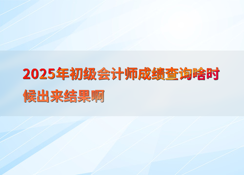 2025年初级会计师成绩预计在考试结束后约两个月公布。