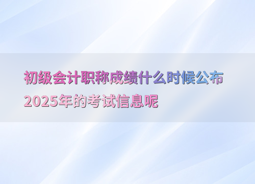 2025年初级会计职称成绩预计在6月公布,具体日期需以官方通知为准。