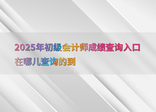 2025年初级会计师成绩查询入口为全国会计人员统一服务管理平台。