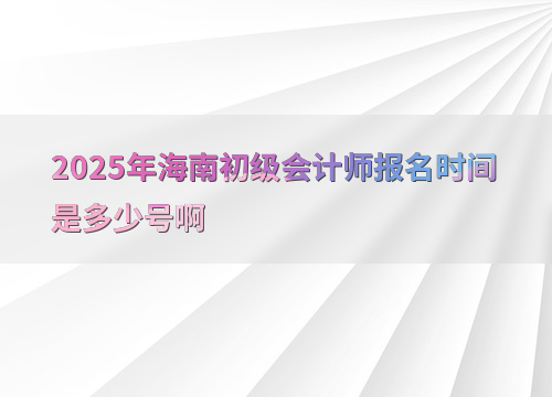 2025年初级会计师全国报名时间为1月3日至1月24日12:00,其中海南地区的报名时间为1月3日10:00至1月24日12:00。