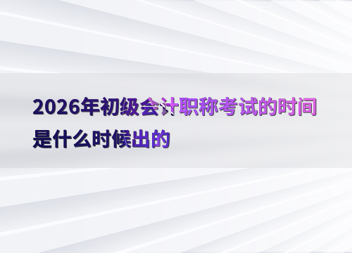 2026年初级会计职称考试时间尚未公布,但根据近年趋势推断,预计将在5月份举行。