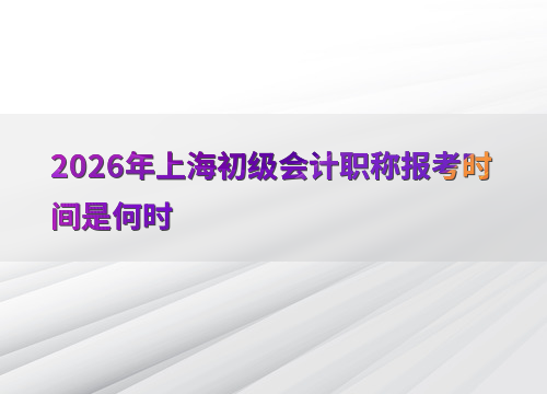 2026年上海初级会计职称考试报名时间为1月12日10:00至1月27日12:00,考生需在此期间完成网上报名及缴费。