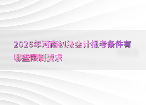 2026年河南初级会计考试报名时间为1月13日至1月27日,报考人员需满足基本条件和学历要求。