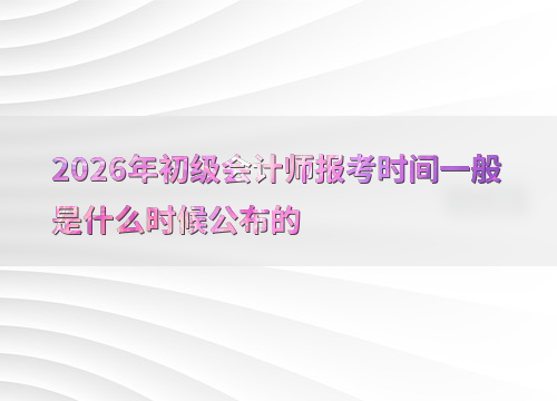 2026年初级会计考试报名时间预计在2025年12月31日前由各省财政部门陆续公布,全国统一报名通道于2026年1月5日至1月27日开放。