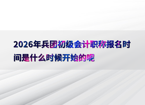 2026年兵团初级会计职称考试报名时间为1月13日至1月27日12:00,缴费截止时间为1月27日18:00。