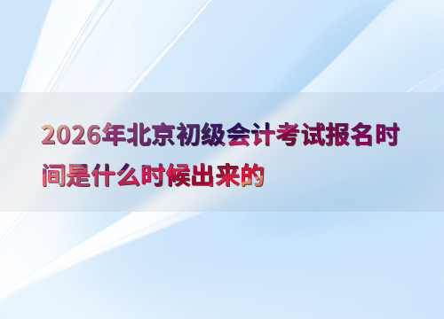 2026年北京初级会计考试报名时间为1月5日8:00至1月27日12:00,考生需在此期间完成信息采集和缴费,逾期将无法补报。