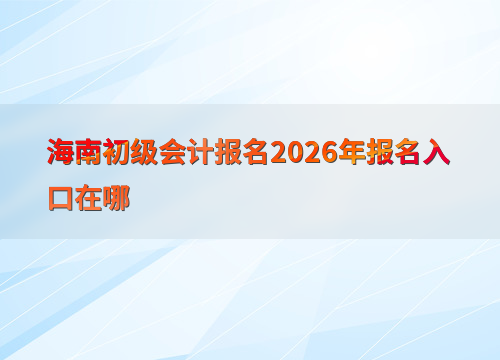 2026年海南初级会计报名时间为1月5日10:00至1月27日12:00,报名已结束。