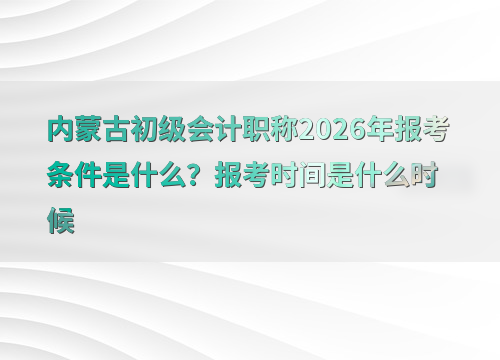 2026年内蒙古初级会计职称报名时间为1月5日至1月27日12:00,缴费截止时间为1月27日18:00。