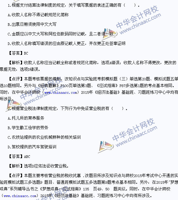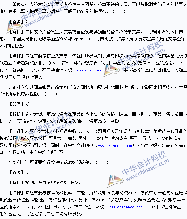 正保会计网校专家根据论坛学员反馈的2015年初级会计职称考试《经济法基础》试题,对2015年初级职称《经济法基础》试题所涉知识点进行了分析总结,希望对考生有所帮助。