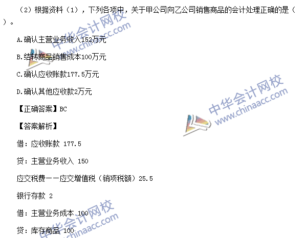 (2)【点评】该题考核销售商品的核算。该知识点与考前模拟试题(一)不定项第2题、考前模拟试题(二)不定项第1题、考前预测卷(一)不定项第1题的考点基本相同。