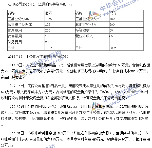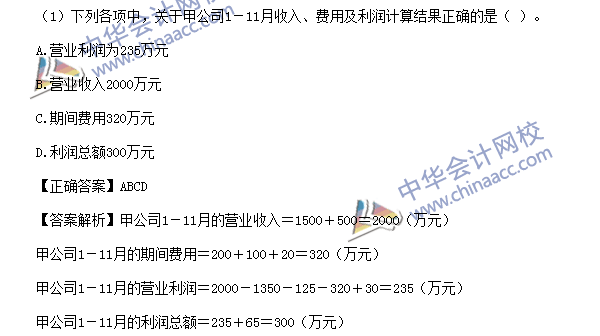 (1)【点评】该题考核期间费用、营业利润、利润总额的相关核算。该知识点与考前模拟试题(一)不定项第2题、考前预测卷(一)不定项第1题、考前预测卷(三)不定项第3题的考点基本相同。
