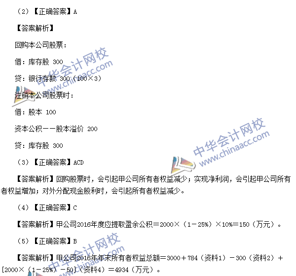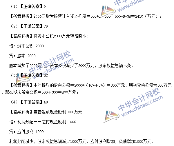 (3)【点评】该题考核所有者权益的相关内容。该知识点与考前模拟试题(三)多选题第12题、考前预测卷(一)多选第5题、考前预测卷(三)多选第11题的考点基本相同。