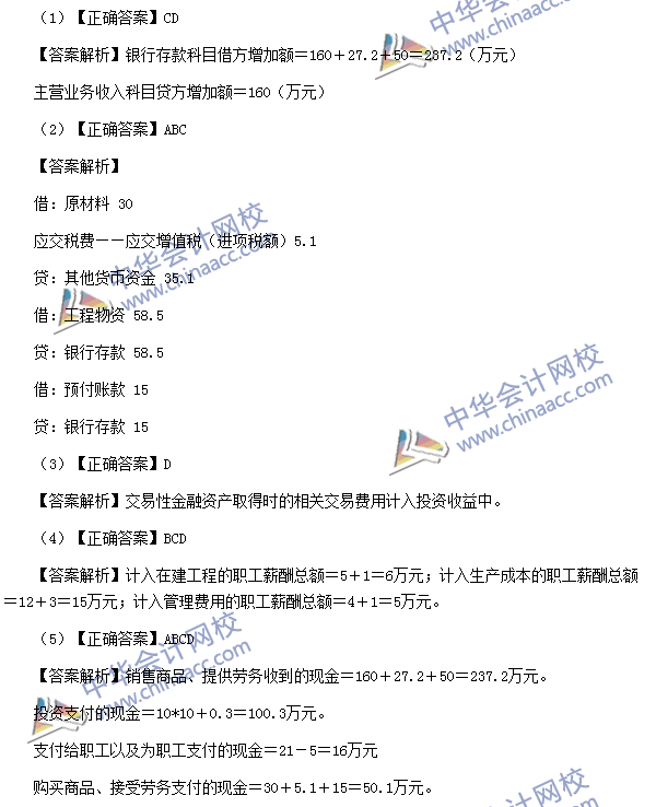 (5)【点评】该题考核现金流量表相关项目的核算。该知识点与考前模拟试题(二)单选题第18题、考前模拟试题(三)不定项第3题、考前预测卷(三)不定项的第1题的考点基本相同。