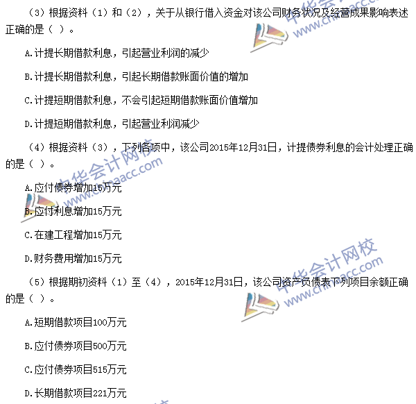 (3)【点评】该题考核长期借款、短期借款的相关内容。该知识点与考前模拟试题(一)不定项第1题、考前模拟试题(三)不定项第1题、考前预测卷(一)不定项第3题的考点基本相同。