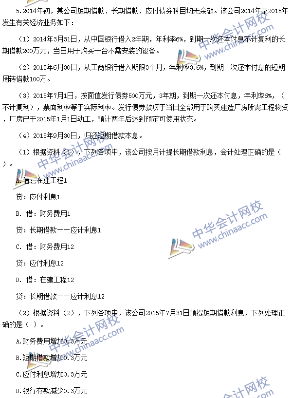 (2)【点评】该题考核短期借款的相关核算。该知识点与考前预测卷(一)不定项第1题、《应试指南》P118单选第6题的考点基本相同。